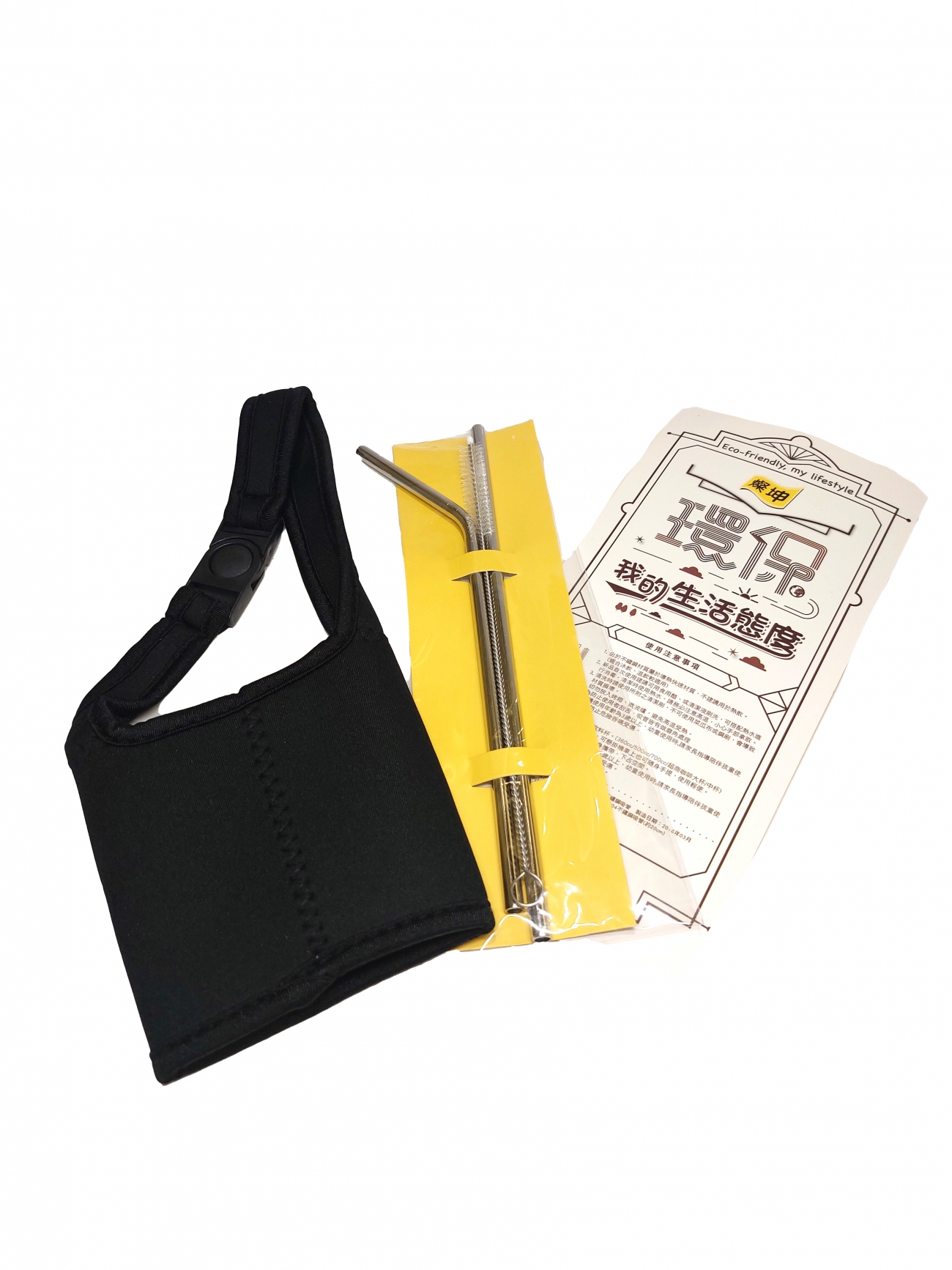 環保飲料提袋+鐵吸管組合