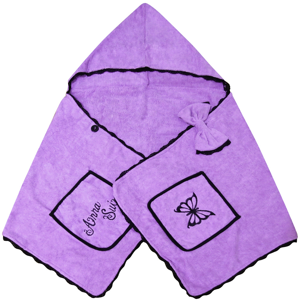 炫紫蝶戀連帽浴巾